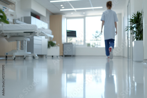 hospital, health care, nurse, clinic, corridor, walking, medicals, equipment, doctor, health, medicine, interior, modern, clean, bright, hallway, professional, care, service, patient, room, ward, emergency, treatment, surgery, recovery, exam, diagnosis, therapy, wellness, hygiene, sterile, technology, innovation, comfort, safety, quality, assistance, support, uniform, scrub, shoe, floor, window, light, perspective