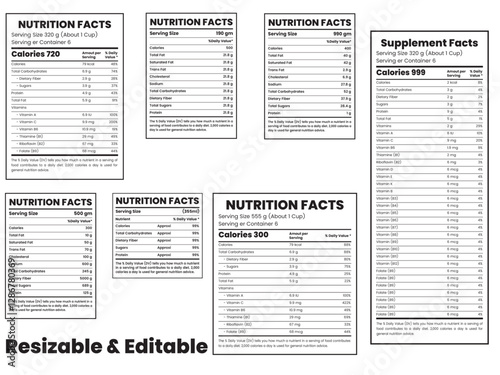 nutrition facts, supplement facts, vitamin facts, nutrition facts label, customizable vector design