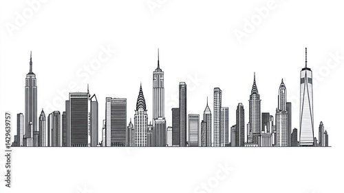 NYC skyline, urban landscape, city architecture, detailed illustration, design element