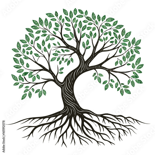 tree, nature, silhouette, vector, tree branch, leaf, illustration, plant, design, spring, art, wood, summer, forest, root, decoration, green, season, drawing, single, black, trunk, oak, symbol, autumn