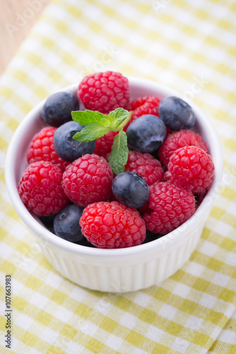 Oatmeal porridge in bowl with berries raspberries and blackberri