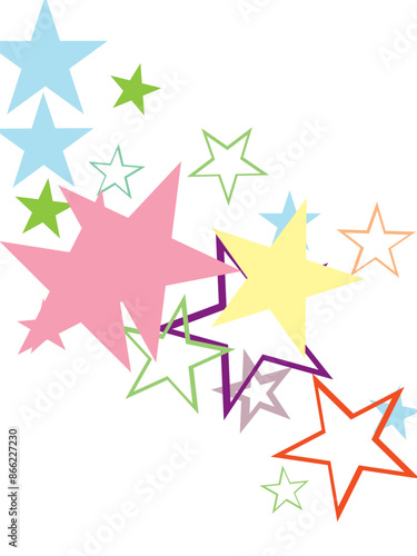 Object fountain organized from random sparcle star pictographs as fireworks.