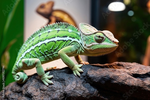 Ocean Green Chameleon Closeup Display Features Stunning Colors and Details