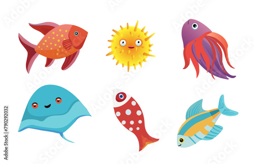 set, fish, cartoon, vector, sea, water, animal, ocean, cute, illustration, marin, tropical, nature, aquarium, background, isolated, icon, underwater, collection, children, life, fauna, pet, exotic, design, bubble, aquatic, tropics, blue, swim, reef, element, clip art, coral, mollusc, starfish, marin, group, water, swimming, image, wild, creature, colourful, colours, undersea, clip
