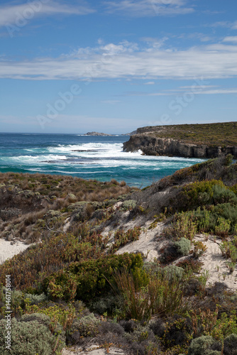 ocean, view, grassy, sand, dune, light, blue, beach, water, nature, sky, rock, landscape, grass, sun, coastal, australia, sea, seascape, coast, coastline, tour tourism, blue skies, cliff, destination, sunshine, dune, kangaroo island
