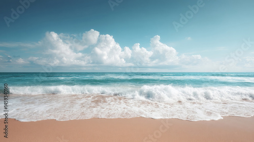 Ocean waves serenade the sandy shore, whispering tranquility of summer solstice or cleansing traditions on Midsummer night
