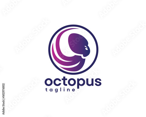 octopus logo, octopus with tentacles coiled logo design template