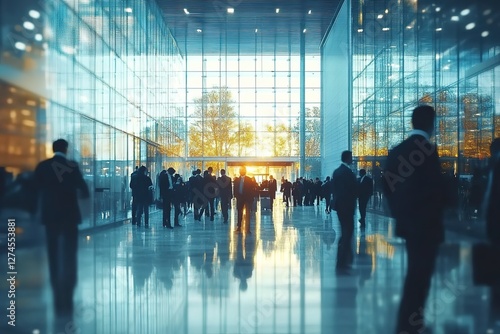 Office Building Entrance with Business Crowd