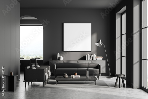 office, interior, sofa, relax, area, poster, meeting, room, canvas, workplace, panoramic, window, drawer, frame, empty, square, template, whiteboard, banner, blank, copy, space, business, coffee table, conference, grey, concrete, floor, carpet, couch, dresser, countryside, furniture, stool, decoration, architecture, wall, design, dark, front view, marketing, style, loft, three-dimensional, render, rendering, illustration