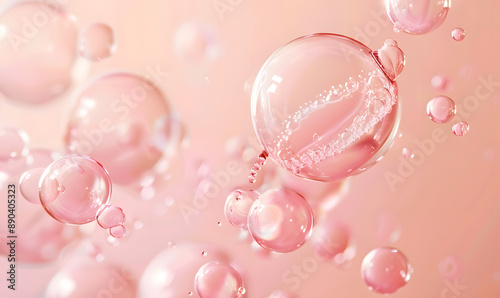 oil bubbles floating against a light background. The bubbles are semi-transparent with a reflective quality