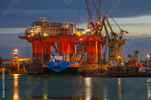 oil, platform, rig, engineering, factory, fuel, industrial, industry, offshore, plant, shipyard, yard, tower, water, yard, construction, container, crane, dawn, dock, docking, drilling, energy, equipment, exploration, gas, gasoline, danzig, harbor, heavy, machine, maintenance, night, ocean, port, poland, polish, power, reflections, repair, sea, ship, shipping, silhouette, steel, stock, structure, tech, technology