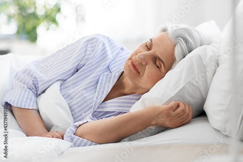 old age and people concept - senior woman sleeping in bed at home bedroom