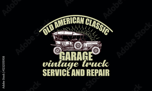 Old American Classic Garage Vintage Truck Service And Repair T-shirt Design