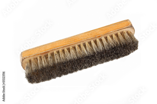 brush, shoe, accessory, dirty, old, clean, care, footwear, isolated, hair, polish, white, wooden, tool, housework, brown, handle