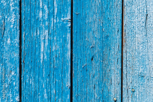 Old and peeling paint Over time, the blue paint peeled off from the old boards and the wood texture cracked. Vintage Abstract Grunge Background