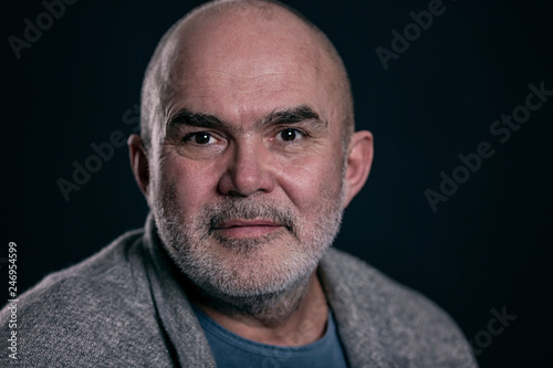 man, portrait, old, close, up, face, person, eye, bald, people, real, head, beard, happy, caucasian, art, grey, hair, closeup, closeup, looking, fine, smiling, 50, senior, studio, smile, balding, black, aged, sitting, male, confident, elderly, guy, detail, friendly, background, adult, natural, 1, casual attire, year