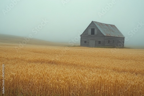 barn, wheat, field, wooden, rural, atmospheric, gold, soft, morning, weathered, tranquil, country, rustic, serene, forgotten, agriculture, dreamy, misty, horizon, farm, sunset, sky, cloud, peaceful, light