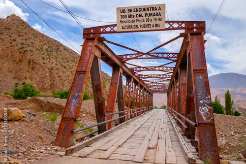 bridge, vintage, old, rust-eaten, wood, desert, metal, red, argentine, travel, sky, holiday, colourful, landscape, culture, ancient, landmark, stone, cloud, tour tourism, high, rural, history, scenic, earth, scenery, south america, hill, site, heritage, mountain, vale, ruin, arid, indigenous, altitude