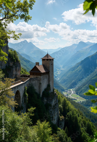 church, architecture, mountain, alps, building, europa, landscape, tower, village, castle, sky, mountain, town, nature, austria, travel, forest, tour tourism, old, religion, summer, alpine, lake, green, mediaeval