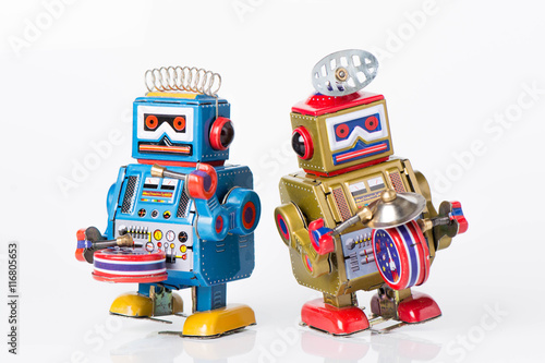 old classic robot toys, isolated on white