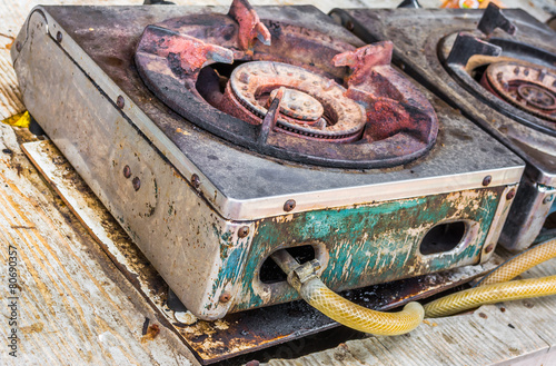 Old gas burner and stove close up