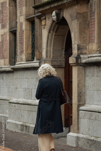 lady, walking, cathedral, church, marble, stone, art, woman, holland, europa, old, religion, travel, history, ancient, landmark, tour tourism, building, dutch, culture, european, hague, divinity, divine, catholic, protestant, white hair, old church, gothic, architecture, historical building, visit, destination, christian, christianity, god