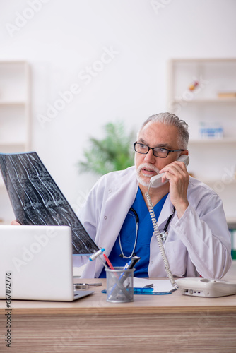old, doctor, working, clinic, hospital, medicine, health, health care, care, checking, image, imaging, looking, magnetic resonance imaging, radiologist, roentgen, scan, scanner, tomography, x-ray, x-ray, phone, phone, speaking, talking, calling, remote, check-up, medicals, physician, practitioner, recovery, recovering, insurance, healer, consultation, man, discussing, explaining, treatment, prescription, specialist, healthy, work, occupation
