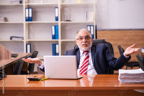 Old male employee sitting in the office