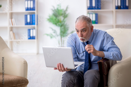 old, businessman, man, business, office, employee, manager, working, computer, laptop, online, cyberspace, call, calling, video, telecom, meeting, virtual, social, conference, teleconference, distance, discussing, explaining, male, thinking, concerned, focused, concentrated, concentration, goggles, eyeglass, specs, sitting, armchair, armchair, consulting, accountant, auditor, boss, lawyer, adviser, overtime, analyst, consultation, tied-up, reporting, workaholic, workload