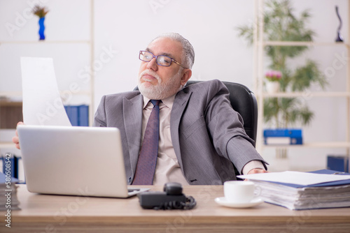 Old male employee working in the office