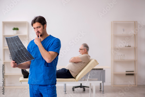 Old male patient visting young male doctor radilogist