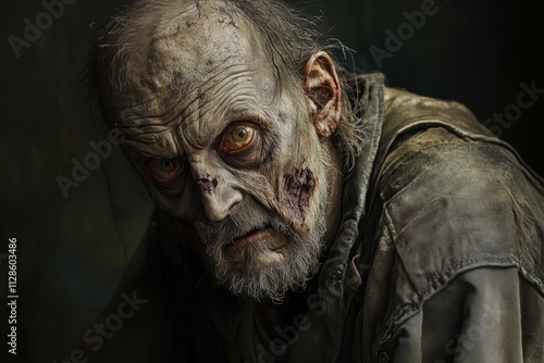 person, old, face, head, art, zombie, black, horror, scarey, halloween, portrait, evil, elderly, male, old man
