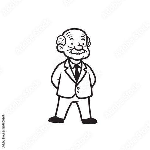 Old man with formal suit black and white vector illustration for classic portrait artwork design