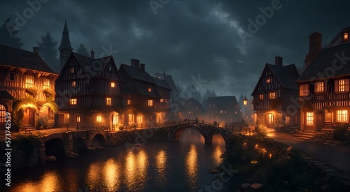 Old medieval village at night [AI Generated]