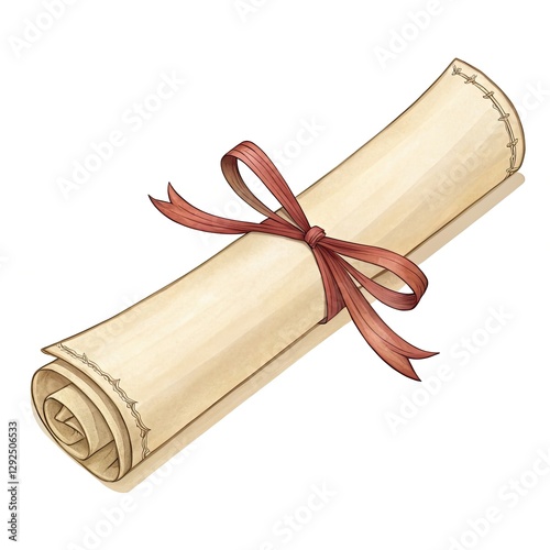 paper, scroll, diploma, ribbon, certificate, old, document, object, empty, rolled, metal, business, graduation, blank, tube