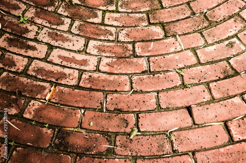Old paver blocks on the curve patio or Curve bricks floor as textured and background