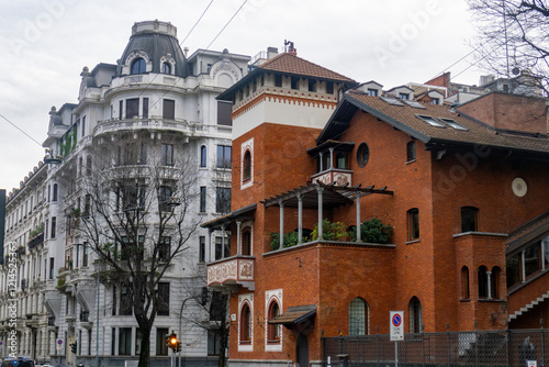 Old residential buildings along via Mascheroni and via Mario Pagano in Milan, Italy