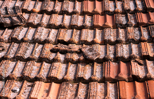 roof tile, roof, tile, rooftop, tiled, old, brown, weathered, background, texture, closeup