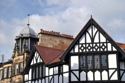building, architecture, roof, chimney, cupola, lead, domed, old, victorian, roofline, gable, sky, commercial, office, britain, scotland, window, facades, blue skies