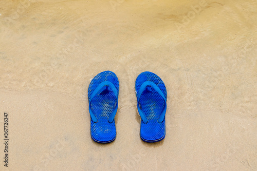 shoe, rubber, beach, lake, shore, water, flip-flop, old, worn, leg, foot, blue, sandal, old-fashioned, obsolete, fashion, style, object, personal, 2, object, pair, sand, water, wave, rest