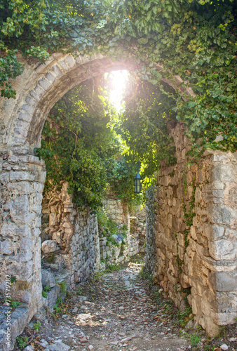 arch, plant, old, history, ruin, ruined, architecture, culture, structure, wall, building, nature, place, grass, built, ancient, scene, outdoors, brick, past, overgrown, traditional, vertical, tree, famous, stone, exterior, green, travel, fort, obsolete, leaf, tranquil, european, arc, demolished, absence, creeper, europa, rock, entrance, bush, abandoned, empty, bar, montenegro