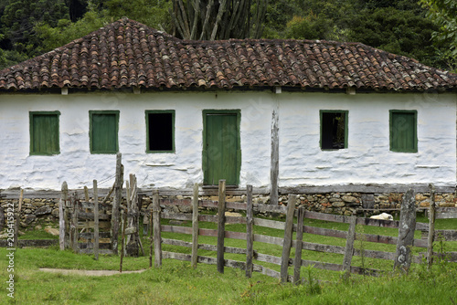 home, land, residence, building, white, green, brazil, brazilian, typical, traditional, tradition, culture, cultural, architecture, style, country, countryside, construction, decoration, decorative, facades, wall, window, simple, basic, popular, common, landscape, rural, grass, tree, natural, nature, stone, foundation, footed, lime, fallen, whitewash, chalk, colonial, old, ancient, 19th century, xix century, settler, former