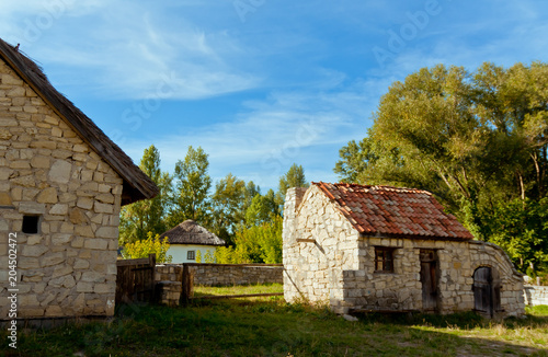 house, building, farm, home, architecture, country, village, sky, grass, landscape, countryside, green, bungalow, barn, blue, wood, tree, summer, stone, wooden, traditional