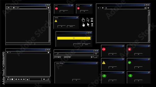 old, browser, vintage, window, web, retro, computer, interface, vector, website, player, audio, video, explorer, system, message, alert, error, bug, mouse, cursor, pointer, icon, pixel, arrow, hand, critical, crash, warning, notification, danger, defect, background, blank, hacking, loading, installing, fractured, report, dark, theme, mode, black, malfunction, skin, night, multi, hourglass