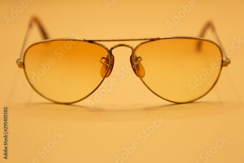 old vintage sunglasses gold frame . old-fashioned eye wearing classic collection with many copy space . accessory summer holiday concept