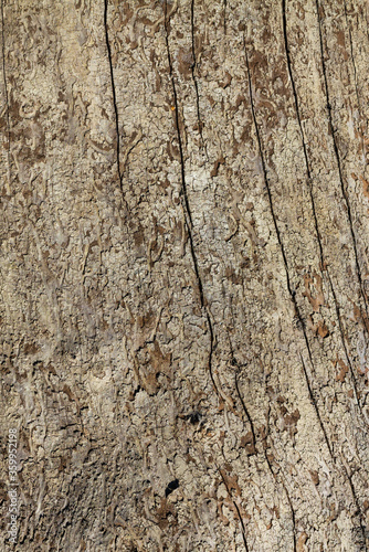 Old wood texture. Polish Bieszczady mountains, Solina reservoir. Polanczyk village, tree trunk on the banks of the lagoon.