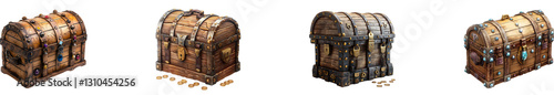 Old wooden box on transparent background collection set