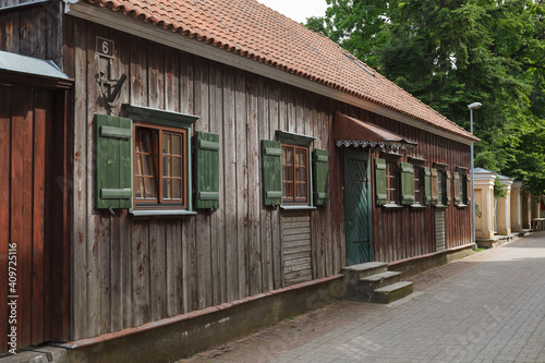 Old wooden house with tiled roof. Parnu, Estonia, Europe