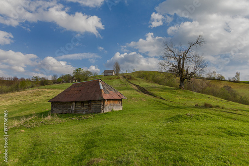 hut, mountain, spring, house, rural, green, nature, old, grass, farm, home, landscape, beautiful, sky, ukraine, wooden, travel, small, wood, village, roof, field, summer, cloud, shack, tree, scenic, building, pine, hiking, country, day, happy, none, silence, natural, traditional, bright, holiday, fall, health, appearance, europa, meadow, young, springtime, shepherd, track