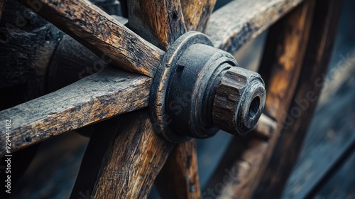 Old wooden wheel with visible wear and cracks, conveying a sense of history and craftsmanship.